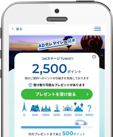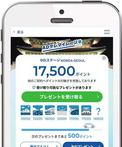 ※ADテレマイレージの対象商品をご契約いただいた方が対象です。ただし、前契約でADテレマイレージの対象商品にご加入の方は、前契約と同一商品の場合、対象外となります。