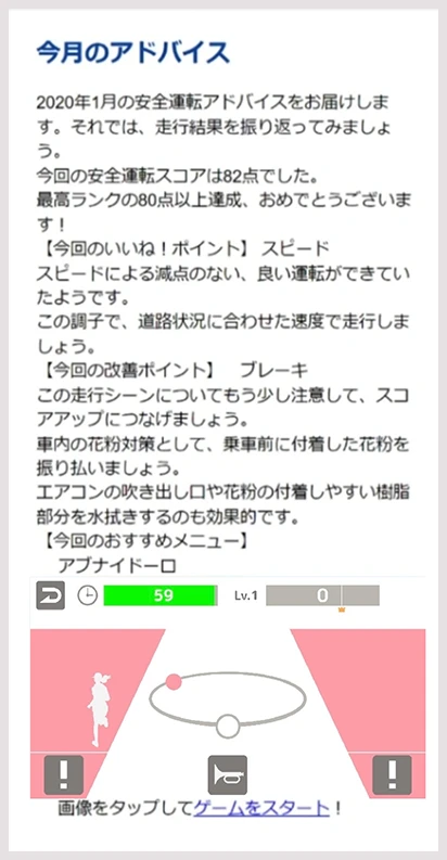 簡単なゲームを通じて、運転タイプを診断し、安全運転につながるアドバイスをご提供します。運転に不安がある方も安心です。